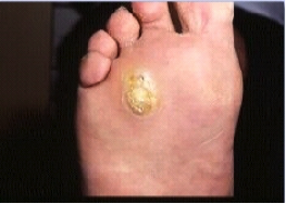 Photo 2 : Plaie sous un kératome Photo 3 : Cellulite sur plaie de pied neuropathique.