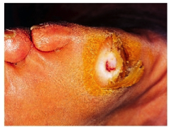 2. Traiter immédiatement l’infection des parties molles (dont le diagnostic est clinique), par antibiotiques (amoxycilline/acide clavulanique) et drainage des zones abcédées (photo 4) (surtout pas d’amputation, sauf si le pronostic vital est engagé, ce qui est rarissime)